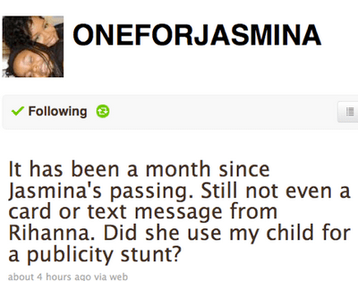 Did this woman never thank rihanna for what she did for her little girl ? she’ s not her big sister ! and 1 month please! Take some break for yourself. Maybe the mother like the media that rihanna brought for the child and not for her !RIP jasmina, RIP !
