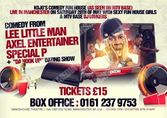 Kojo the comedian will be taking his Comedy Fun House show and his glamorous Fun House assistants to Manchester on the 28 May.