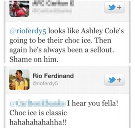 Published at 468 × 444 in UK NEWS: RIO FERDINAND ACCUSED OF ENDORSING ASHLEY COLE ‘CHOC ICE’ TWEET