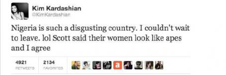 The Voice reports that the extremely talented Kim Kardashian allegedly described Nigeria as being a “disgusting country and compared Nigerian women to apes in a private message to her sister, which was then accidentally sent to her millions of followers.