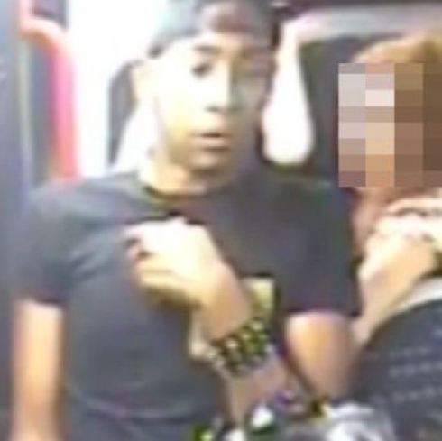 The main suspect for the assault is described as a light-skinned black man of slim build. He is approximately 20 years old and was wearing a black T-shirt with a patterned pocket on the chest, dark trousers and a baseball cap worn back to front. The other four men in the group were also black. One of the men was sitting on the lap of another for some of their time on the bus.
