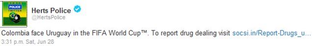 “We would like to apologise to anyone who has been offended by the tweets issued by Hertfordshire Constabulary linked to the World Cup.